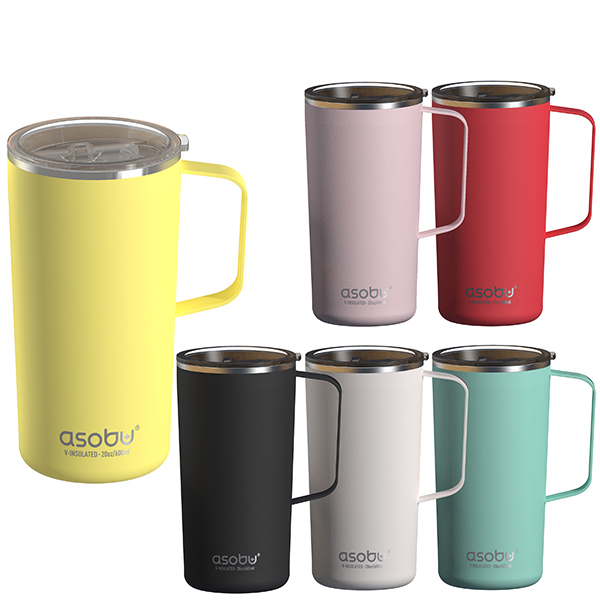 Tower Mug- ספל תרמי נירוסטה ציפוי קרמי פנימי- 600 מ"ל מכסה טרייטן עם ידית מבית ASOBU